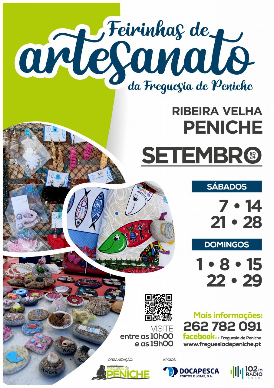 Mês de Setembro e as Feirinhas de Artesanato da Freguesia de Peniche vão continuar a estar presentes durante os fins de semana na nossa Ribeira Velha.