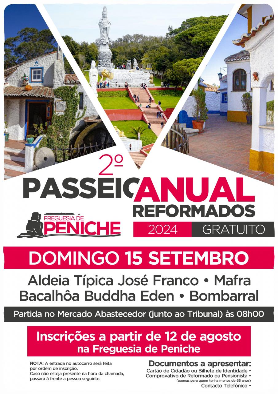 O segundo Passeio Anual de Reformados da Freguesia de Peniche está já marcado para Domingo dia 15 de setembro.