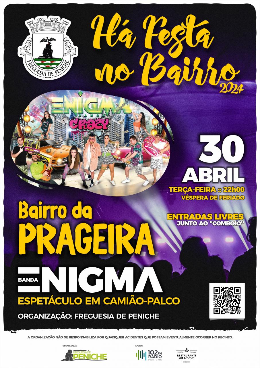 Chegou a 3ª edição do "Há Festa no Bairro"... Em 2024 escolhemos o Bairro da Prageira que vai contar com a alegria e animação contagiantes da Banda Enigma. Não percam !